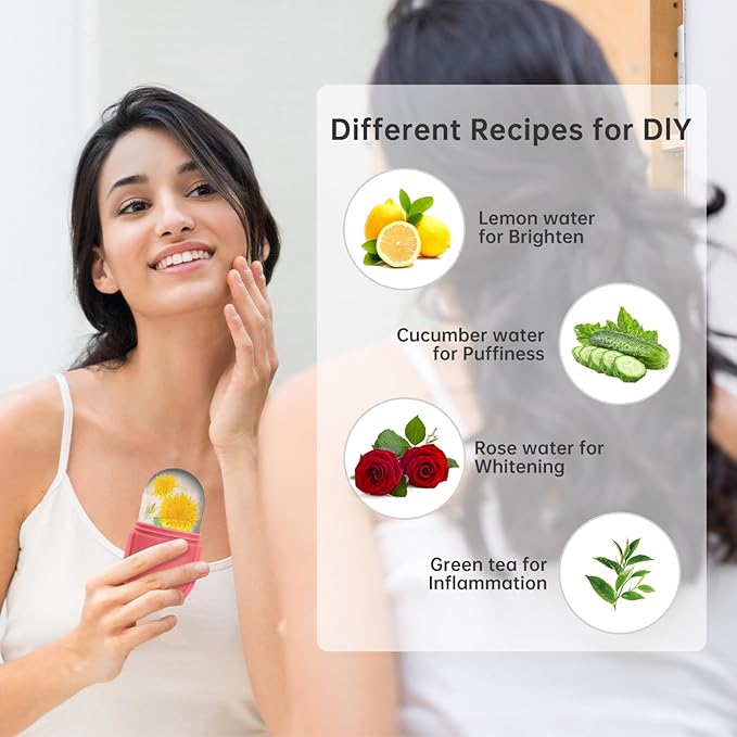 - đăCustomize recipes & Perfect GiftăTo really enhance the skin effect, you can use your creativity and customize the formula according to your specific skin needs, such as lemonade for whitening, green tea for inflammation, cucumber water for reducing swelling, and coconut for improving skin Milk. You can use a juicer to squeeze them into juice, then add water, essential oils, and roses to the ice tray. Treat yourself or a loved one to a gift that keeps on giving.