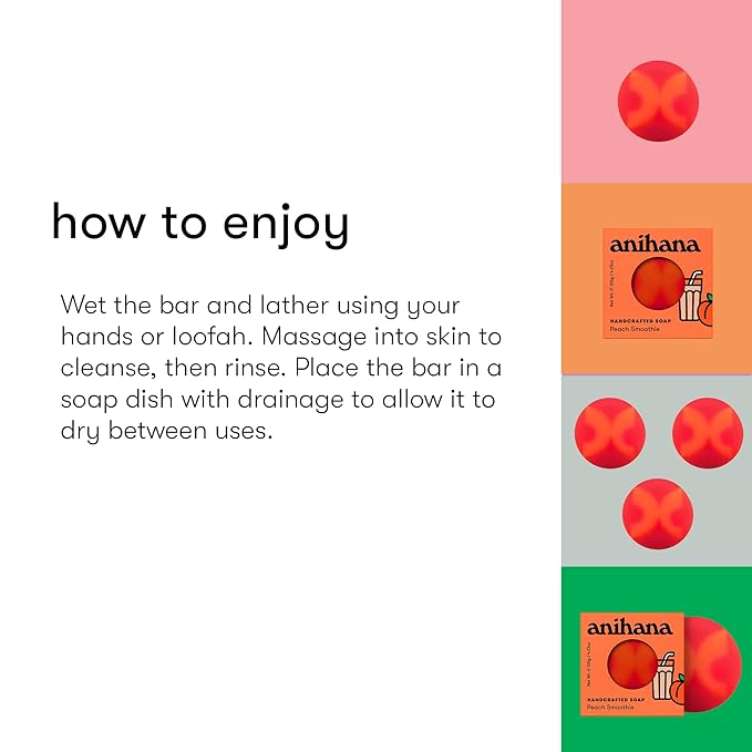 ANIHANA Handcrafted Natural Soap with Coconut Oil, Gentle Cleansing, Paraben Free, Refreshing Peach Smoothie Scent, 4.23 oz