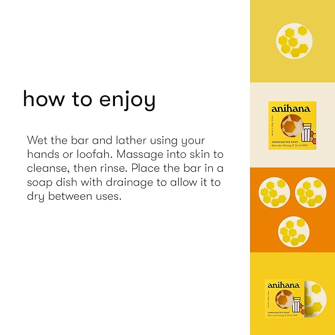 ANIHANA Handcrafted Natural Soap with Coconut Oil, Gentle Cleansing, Paraben Free, Refreshing Manuka Honey & Goat Milk Scent, 4.23 oz