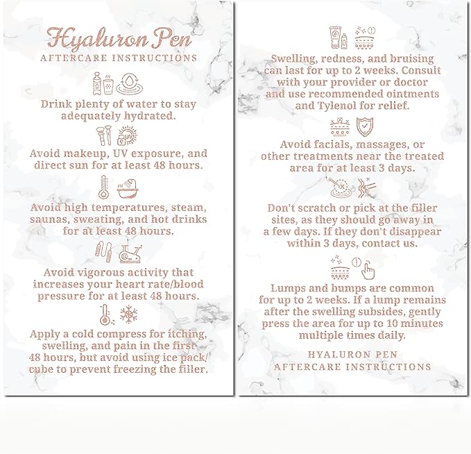 100 Pack - Premium Hyaluron Pen Lip Filler Aftercare Instructions Card 2 x 3.5" Accessories Supplies Kit Care - HP21A100_N