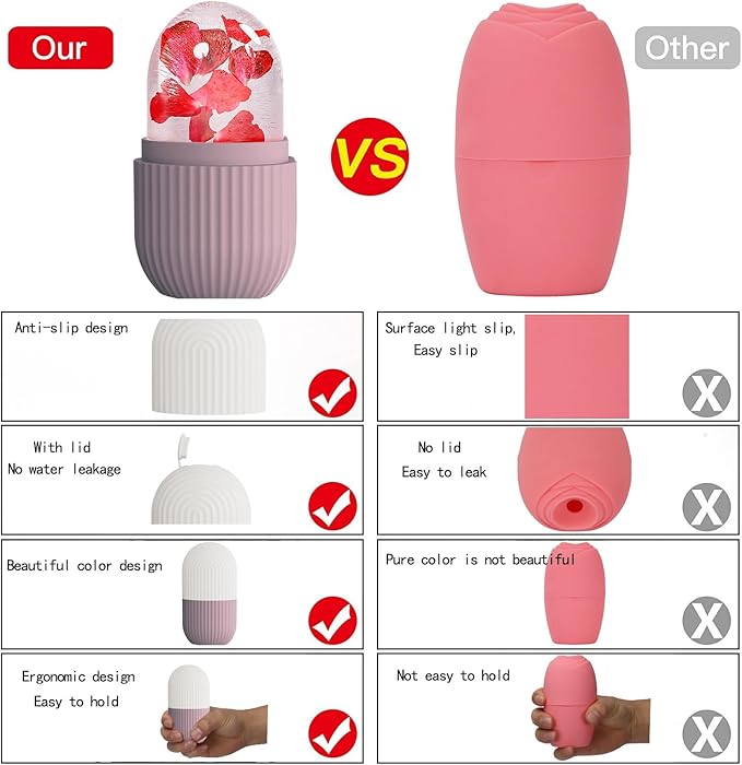 - βοΈ HIGH-QUALITY: This ice roller for face is made of high-quality silicone material, which is repeatable and durable. Small and light design, ergonomic hand design is easy to grasp, ice roller head can slide on the skin,It is also easy to carry.
