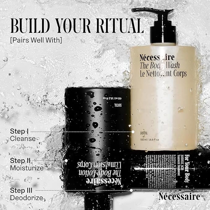 Nécessaire The Body Wash Santal. Natural Body Wash for Women & Men, Therapeutic Shower Gel with Epsom Salt + Minerals. Gel Cleanse,16.9 fl oz.