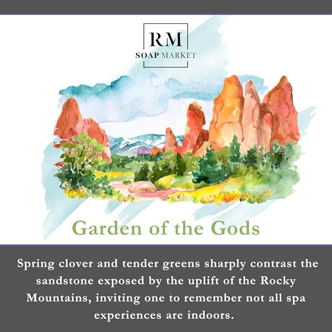 - BREATHTAKING GARDEN OF THE GODS FRAGRANCE: Transport yourself to the majestic Rocky Mountains with the Garden of the Gods fragrance, where the fresh scent of spring clover and tender greens contrasts with the rugged beauty of sandstone formations. This invigorating aroma evokes the natural elegance of an outdoor spa experience, connecting you to the serene landscapes that inspire it.